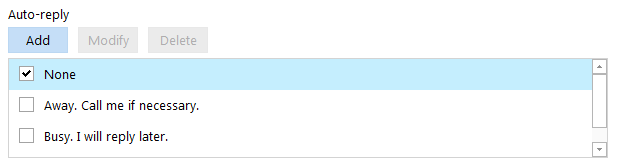 Image shown as the default Auto-reply message;Users can add, edit and delete the auto-reply messages.